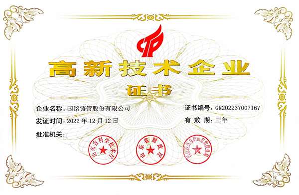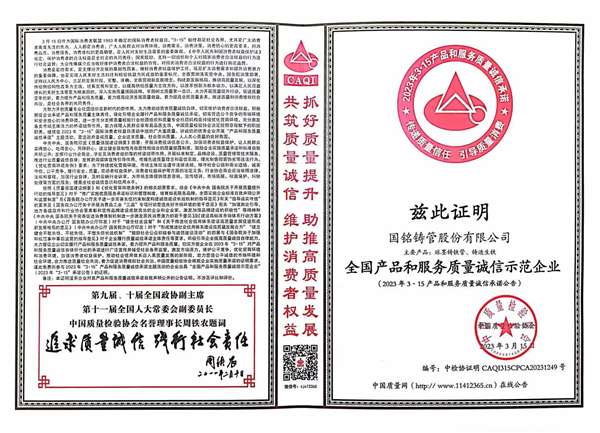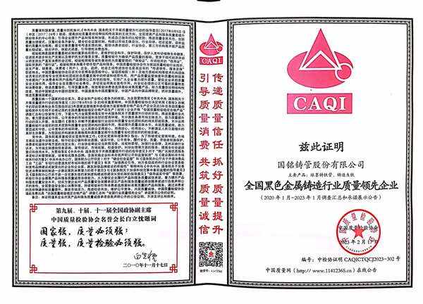 在半個多世紀的崢嶸歲月中,國銘鑄管依托雄厚實力和專業(yè)技術品質,堅持“技術提升質量,品質鑄就品牌,創(chuàng)新推動發(fā)展”的企業(yè)宗旨,為客戶提供滿意的產(chǎn)品和服務