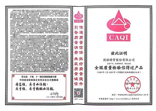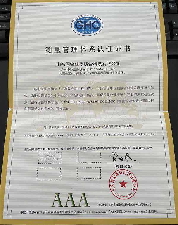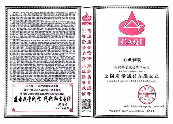 公司堅持以質量為生命,以滿足用戶需求作為自己的追求,依靠雄厚的技術力量和先進的生產(chǎn)、檢測設備,對生鐵、球墨鑄鐵管產(chǎn)品進行全過程控制,產(chǎn)品質量得到全面的保證